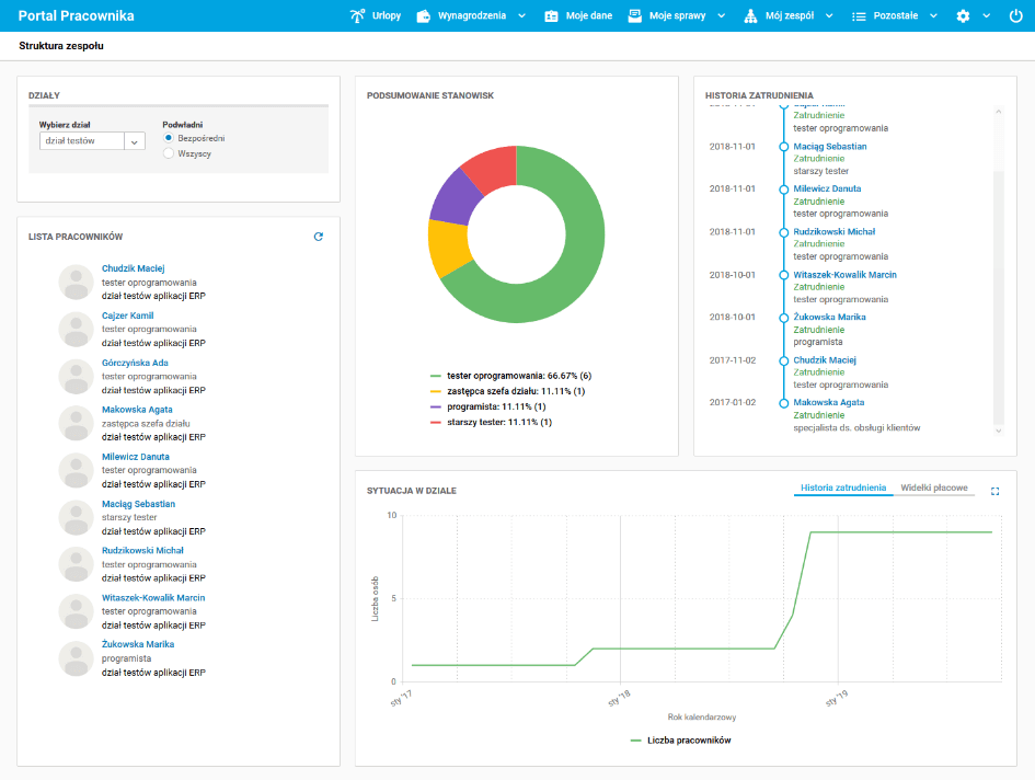 Utworzono funkcjonalność Mój zespół służącą do zarządzania podległymi pracownikami.