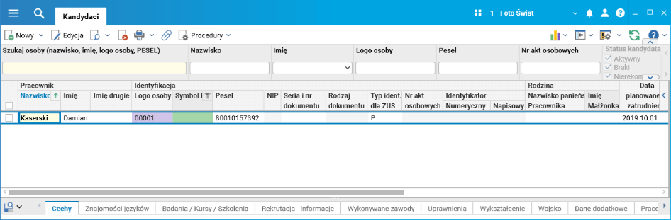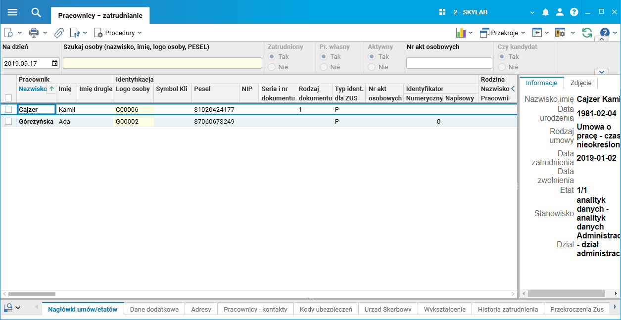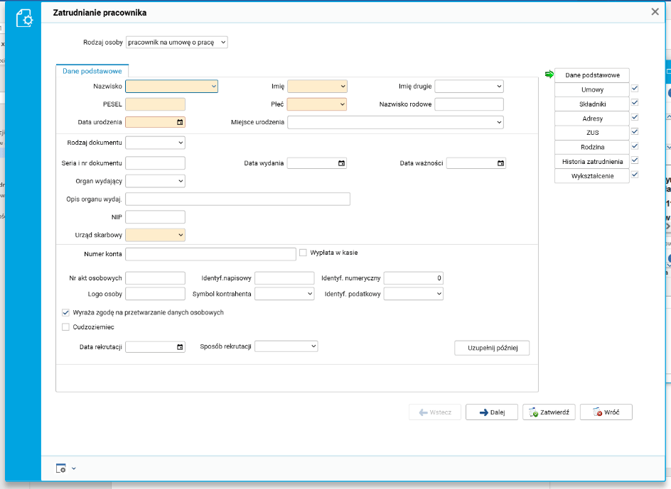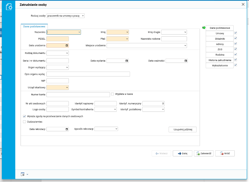 · słownik Pracownicy – zatrudnianie,