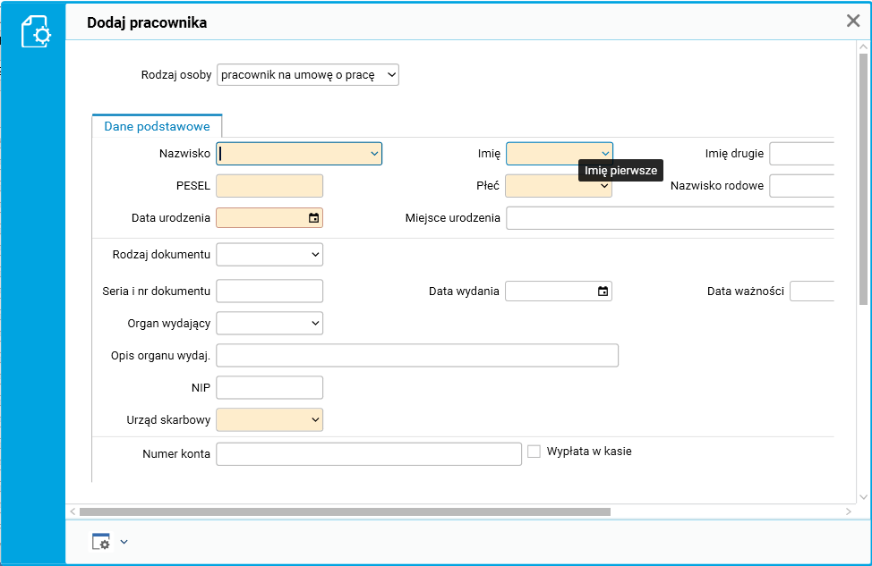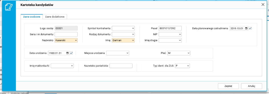 Rys. Formatka edycyjna słownika Pracownicy – zatrudnianie