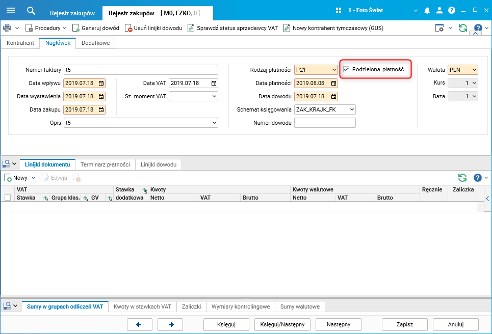 Dodatkowo zmieniono procedury do eksportu dokumentów z LS do FK w taki sposób, aby przenosiły informacje o podzielonej płatności z nagłówków dokumentów wystawionych w module LS do rejestrów FK.