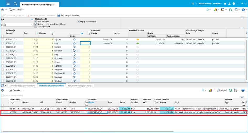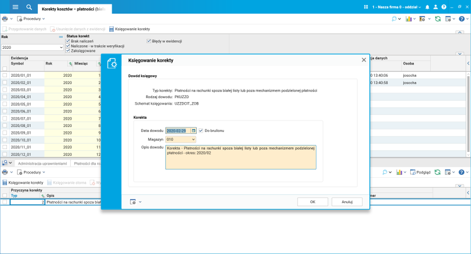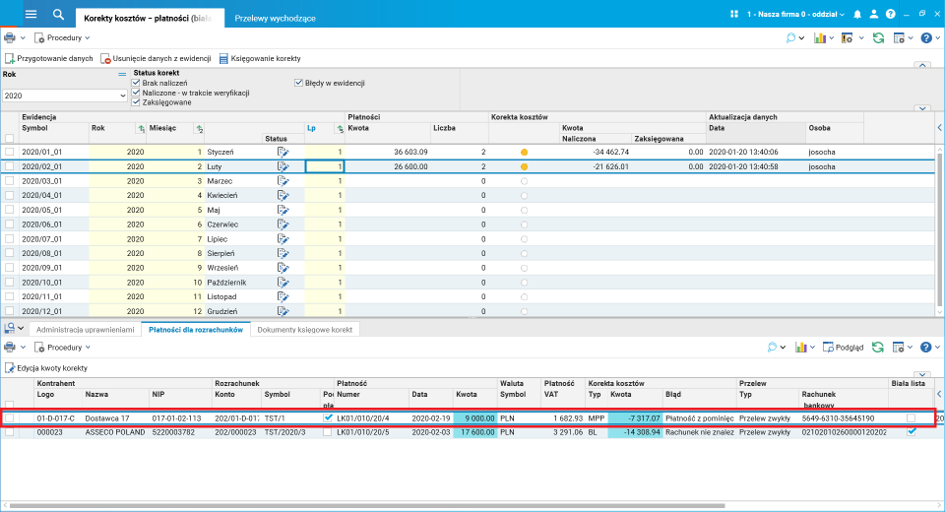 Rys. 2. Ewidencja korekt kosztów za luty 2020