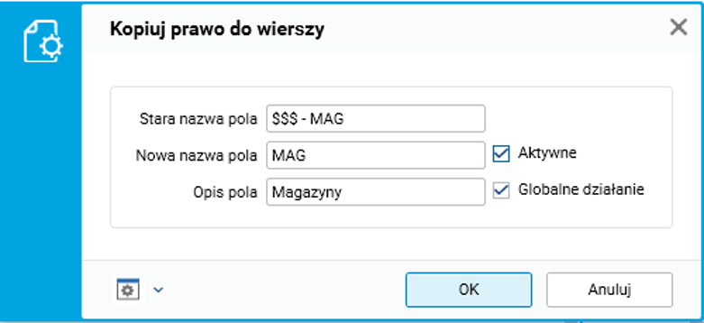 Rys. 5. Kopiowanie prawa do wiersza dla pola MAG
