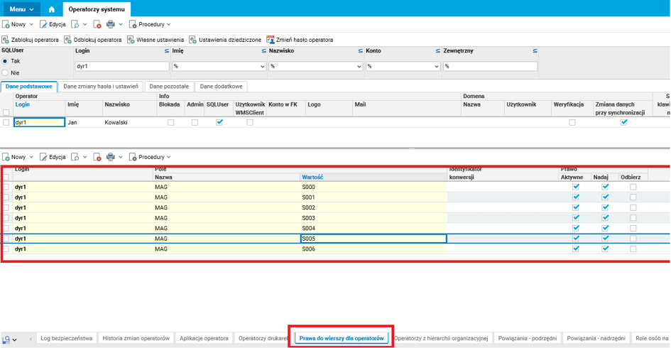 - Określenie zakresu dostępu do danych dla poszczególnych operatorów. Można to zrobić na dwa sposoby: