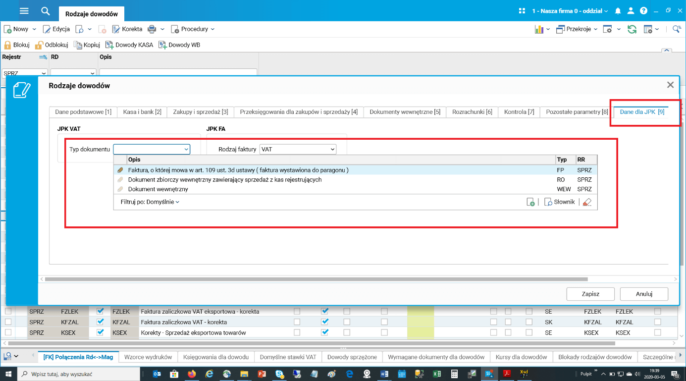 Rys. 10. Szczegół Dodatkowe dane dla JPK w module FK