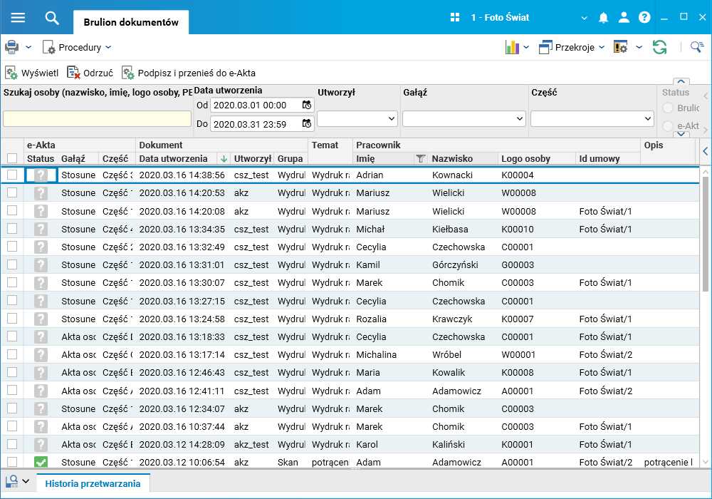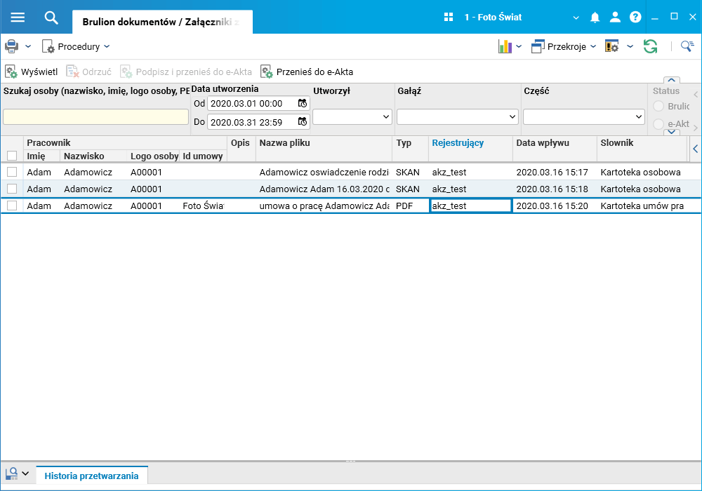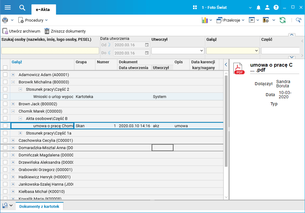 ·        Wszystkie dokumenty pracownika w postaci załączników (plików) wraz z podpisami.