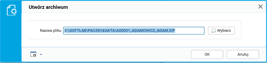 Do utworzenia na dysku archiwum dokumentów pracownika służy procedura Utwórz archiwum. W wyniku jej działania zostaje utworzony plik zip zawierający: