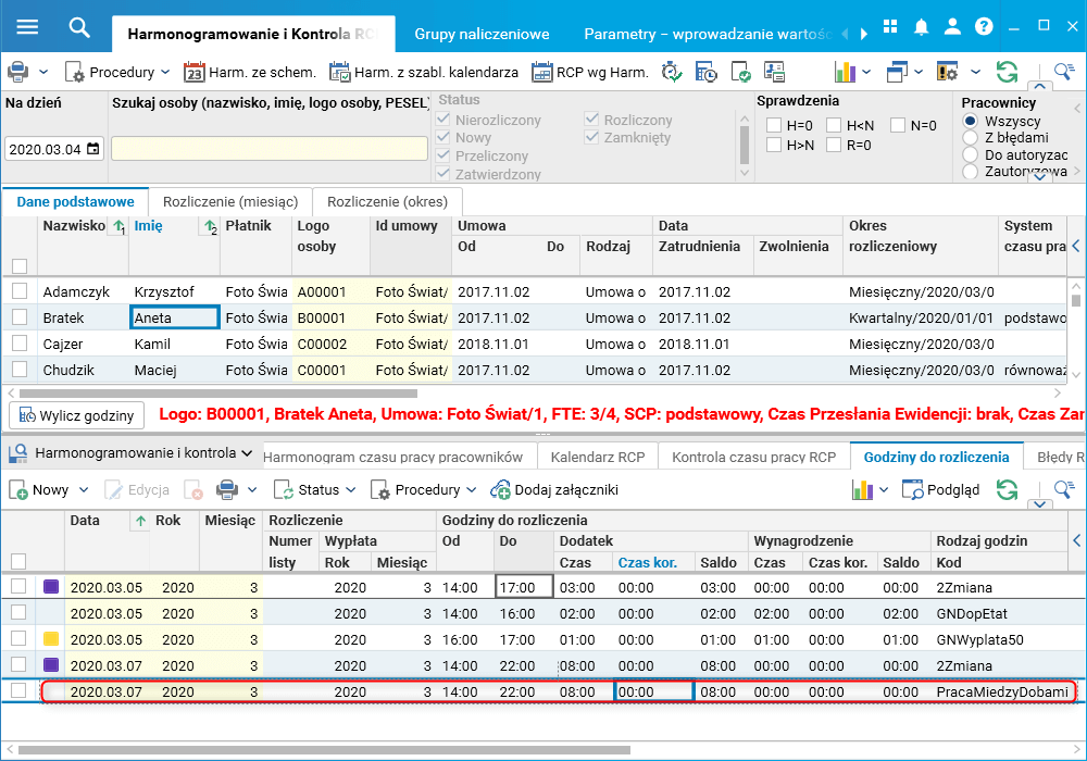 W module RCP umożliwiono rozliczanie godzin PracaMiedzyDobami w tym samym czasie co godzin nadliczbowych średniotygodniowych (miesięcznie lub na koniec okresu rozliczeniowego).