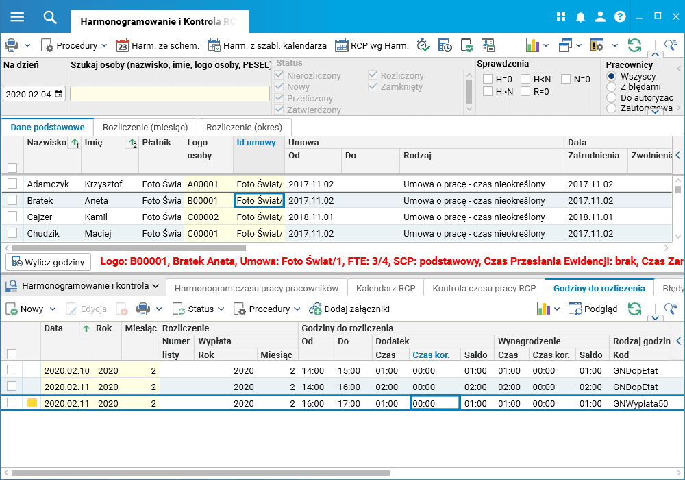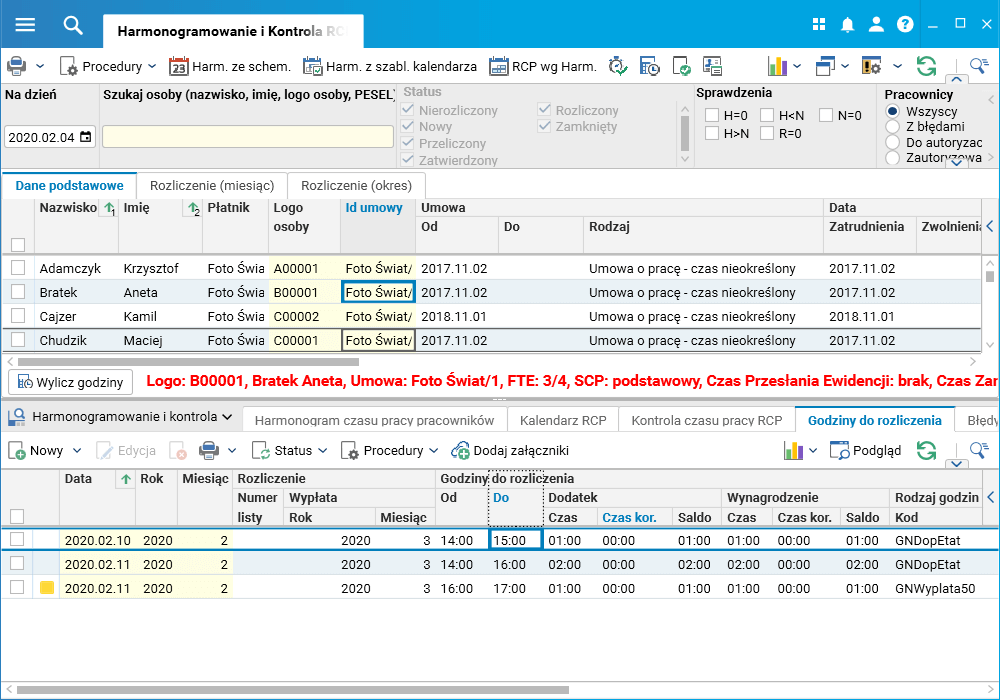 W module RCP umożliwiono rozliczanie godzin dopełnień do etatu w tym samym czasie co godzin nadliczbowych. Dotychczas godziny dopełnień do etatu były zawsze rozliczane miesięcznie.
