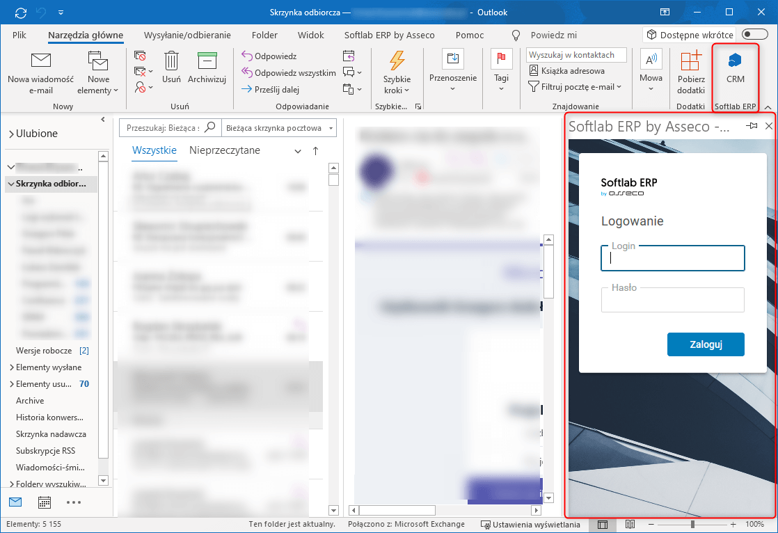 Rys. Ekran logowania do aplikacji HTML systemu Softlab z poziomu aplikacji MS Outlook