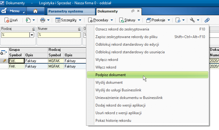 Rys. Podpis dokumentu w słowniku E-Dokumentów