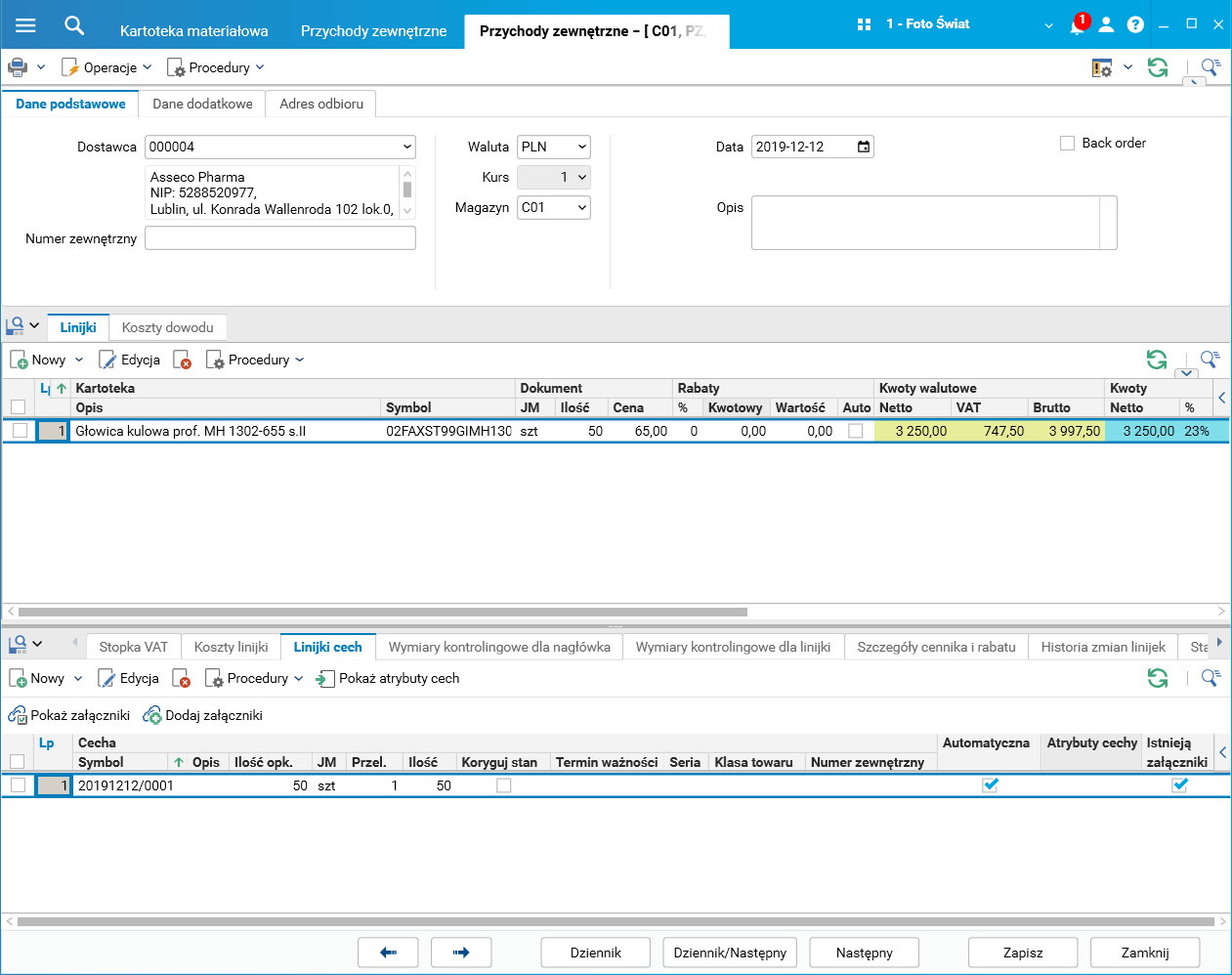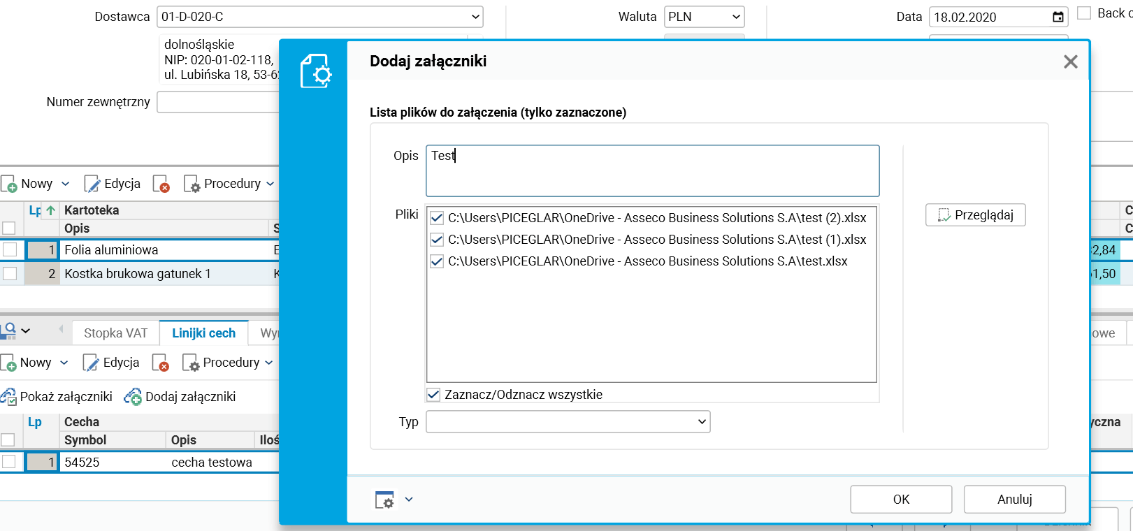 Umożliwiono dodawanie załączników do cech towarów znajdujących się na dokumentach przychodowych (PZ).