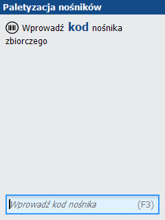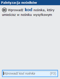 W pierwszym kroku odczytujemy kod nośnika zbiorczego, w którym chcemy umieścić spakowane towary.