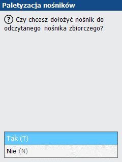 Jeżeli kod, który odczytamy, należy do nośnika w statusie Przygotowana do wydania, to system zapyta nas, czy chcemy dołożyć do niego nośniki.