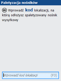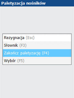 Jeśli chcemy zakończyć wprowadzanie nośników wysyłkowych, wybieramy dostępną pod klawiszem F4 opcję Zakończ paletyzację.