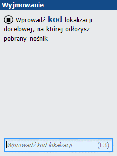 Po wybraniu nośnika do wyjęcia lub opróżnienia odczytujemy kod lokalizacji docelowej. Może to być: