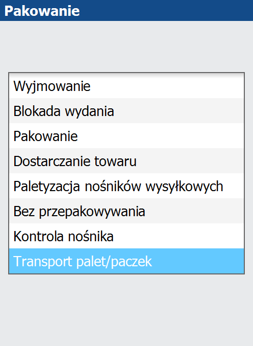 Rys. Opcja Transport palet/paczek dostępna w menu aplikacji WMS Client