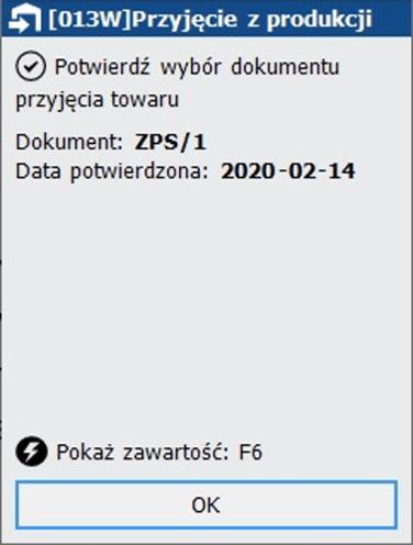 W kolejnym kroku potwierdzamy wybór dokumentu ZPS. Jeśli chcemy podejrzeć zawartość dokumentu awizo, możemy skorzystać z klawisza F6.