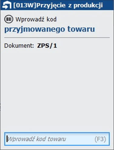 Rys. Wprowadzenie kodu przyjmowanego towaru