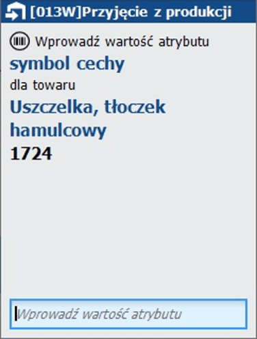 Jeżeli przyjmowany towar posiada atrybuty, zostaniemy poproszeni o ich uzupełnienie. Ostatnim etapem w procesie przyjęcia z produkcji jest wprowadzenie ilości przyjmowanego towaru.