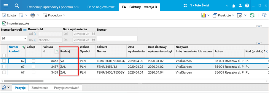 1. VAT – Faktura podstawowa oraz faktura wystawiona w związku z art. 106f ust. 3 ustawy o VAT.
