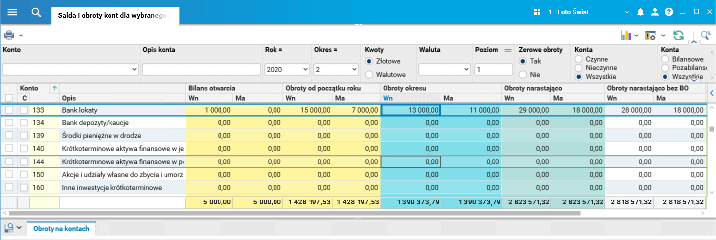 1.      W słowniku Salda i obroty kont dla wybranego okresu zostały dodane kolumny Obroty narastająco bez BO;Wn i Obroty narastająco bez BO;Ma – obroty w tych kolumnach prezentowane są bez dowodów z bilansu otwarcia.