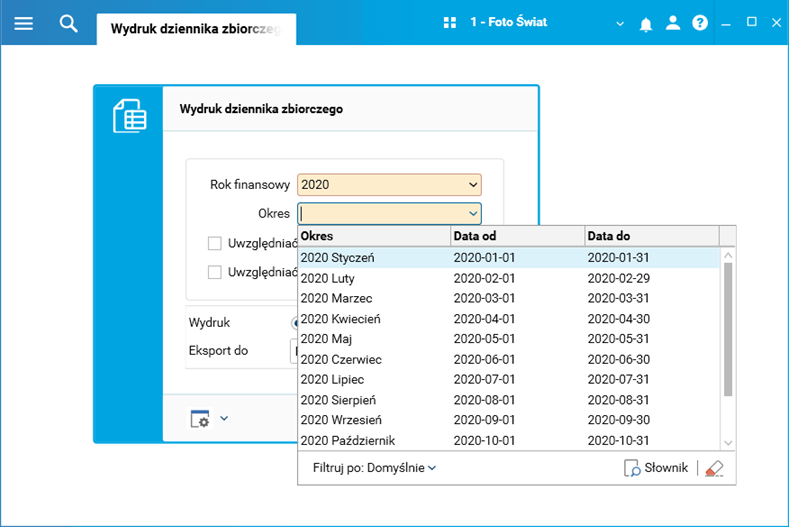 2.      We wszystkich zestawieniach dziennika, czyli Wydruk dziennika zbiorczego, Wydruk dziennika cząstkowego oraz Dzienniki cząstkowe w parametrach raportu przy wyborze wartości w polu Okres został wykluczony okres Bilans otwarcia.