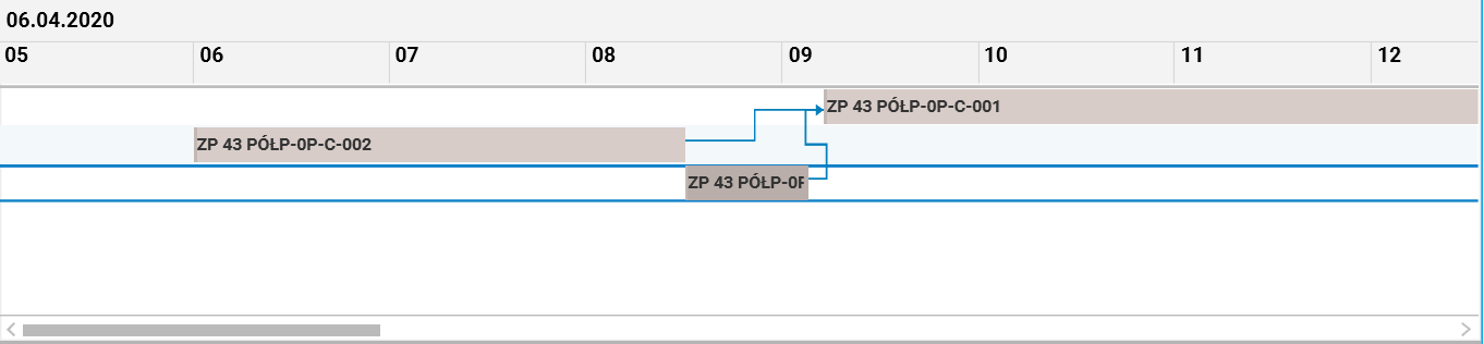 Przeglądarka powiązań między operacjami w harmonogramie prezentuje w formie graficznej zależności między operacjami, kolejność ich wykonywania. Dzięki temu widoczne są ewentualne złamania marszruty produkcyjnej, według której powinny być realizowane poszczególne zlecenia.