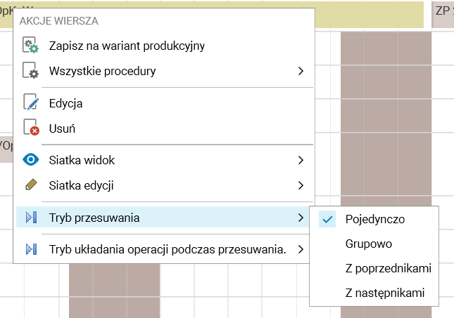 ·        Tryb przesuwania – do wyboru jest: pojedynczo, grupowo (całe zlecenie), z poprzednikami, z następnikami.