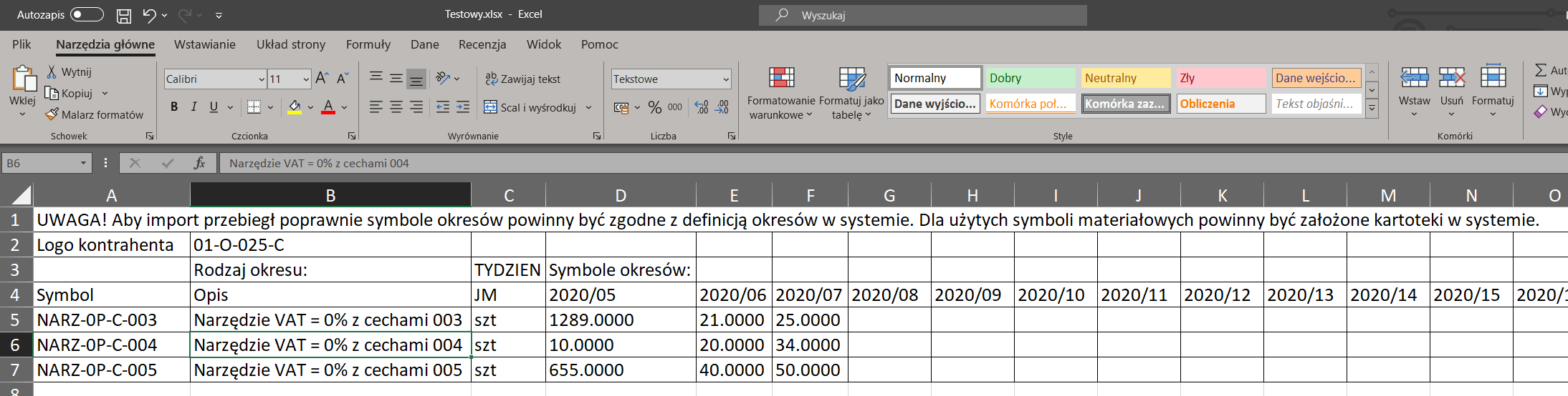 Plik może być uzupełniony ilościami na kolejne okresy oraz mogą być edytowane wypełnione już ilości.