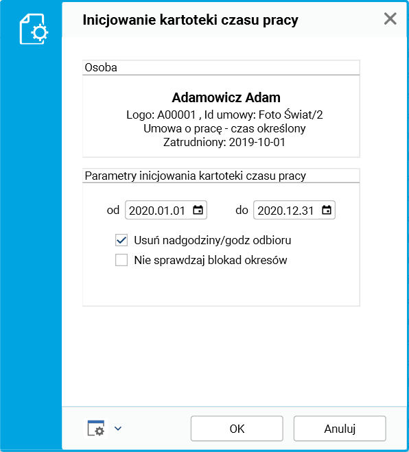 Rys. 3. Procedura Inicjowanie kartoteki czasu pracy w słowniku Pracownicy – umowy(etaty)