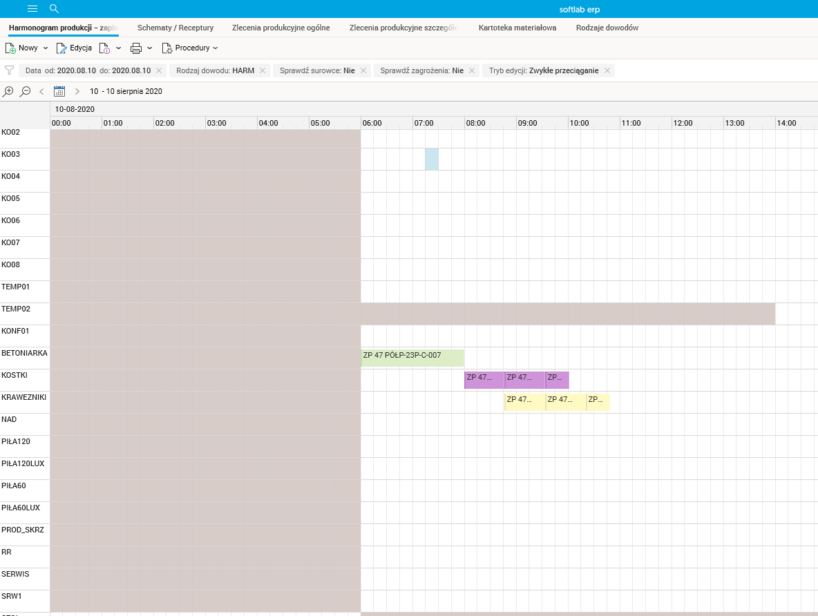 Taka sytuacja została też obsłużona w funkcjach wyliczających zagrożenia realizacji harmonogramu produkcji.