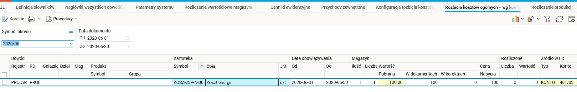 W wersji 100 systemu zmodyfikowano słowniki służące do rozliczania kosztów bezpośrednich i pośrednich przenoszonych z modułu FK.