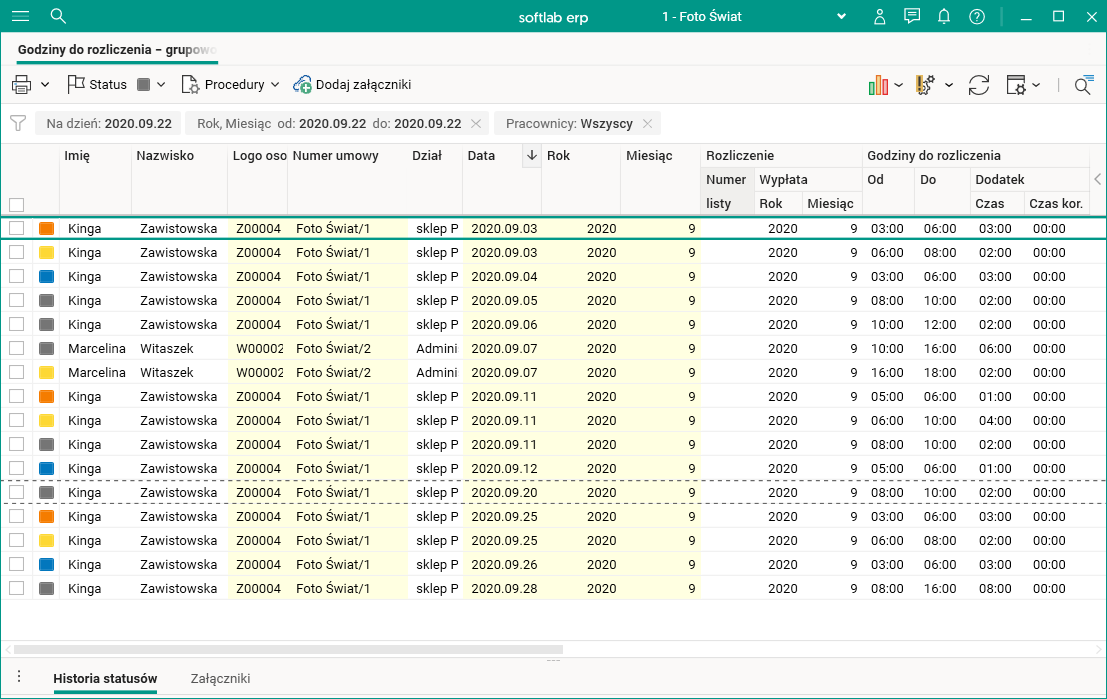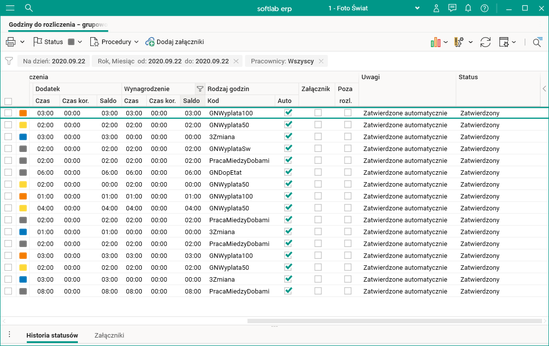 W jednym miejscu w systemie zgromadzono informacje o godzinach do rozliczenia wszystkich pracowników. Umożliwiono ponadto zmianę terminu wypłaty wynagrodzenia za godziny nadliczbowe oraz zmianę ich rodzaju dla jednego lub wybranych pracowników lub też dni.