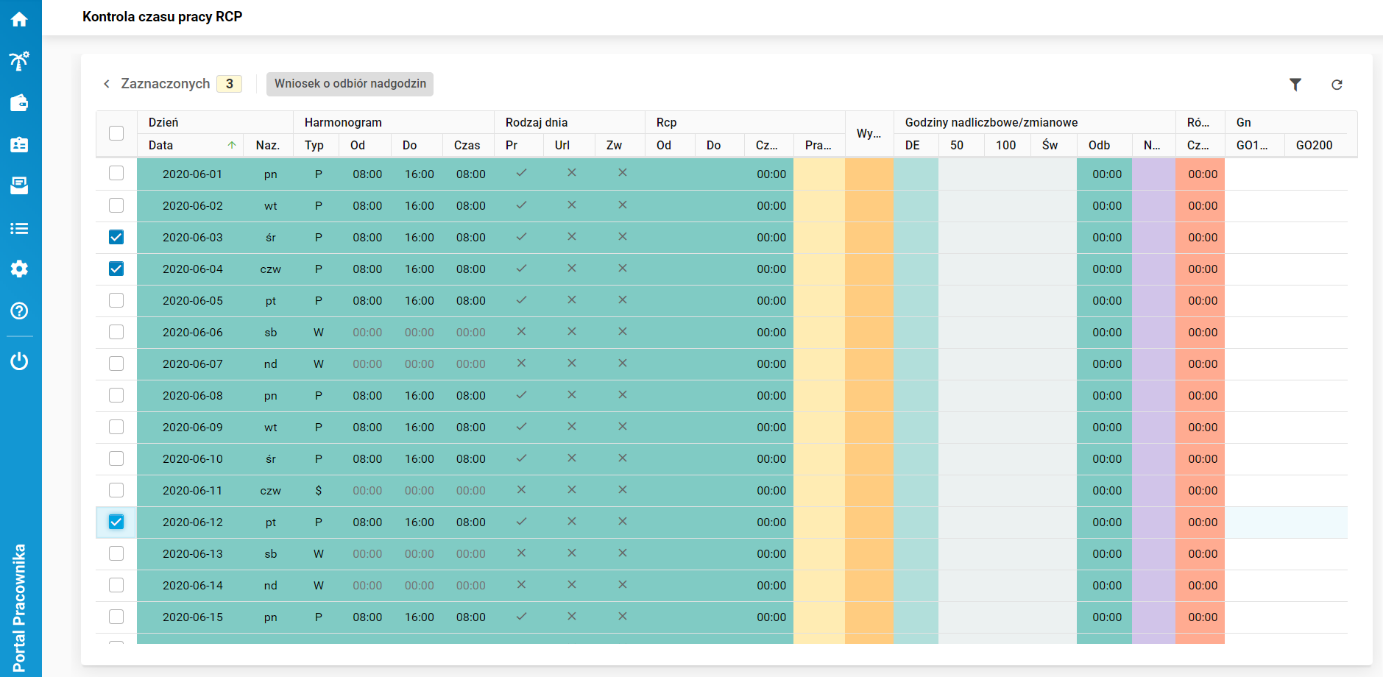 W Portalu Pracownika umożliwiono rejestrację wniosku o odbiór nadgodzin. Wniosek może wysłać zarówno pracownik, jak i jego przełożony.