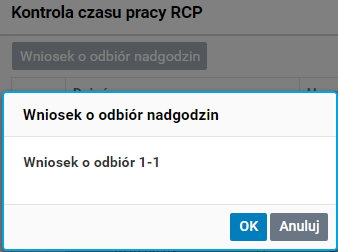 Rys. Okno procedury Wniosek o odbiór nadgodzin