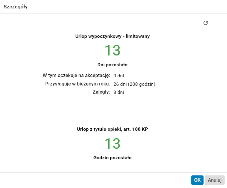 Rys. Okno Szczegóły w sekcji Urlop do wykorzystania