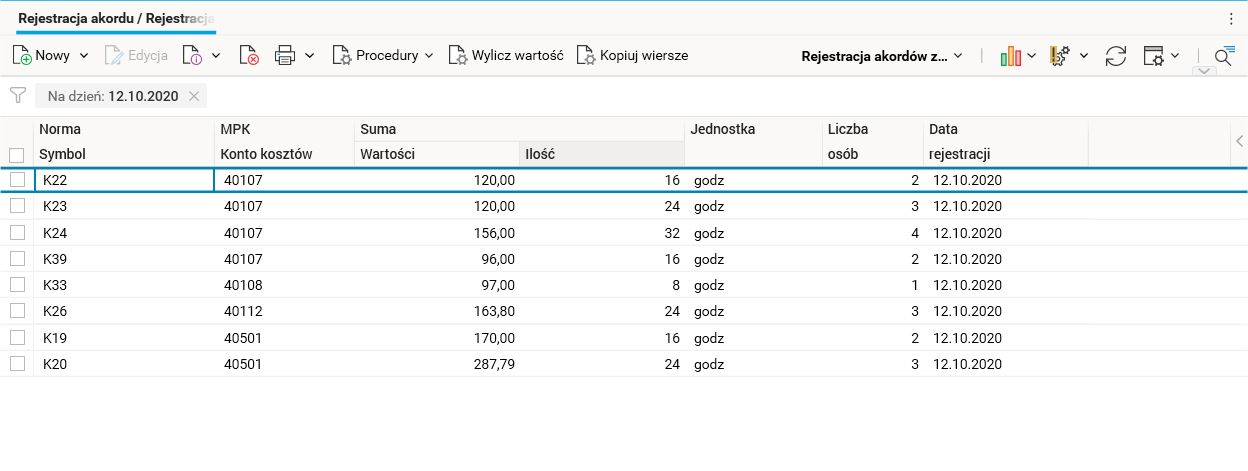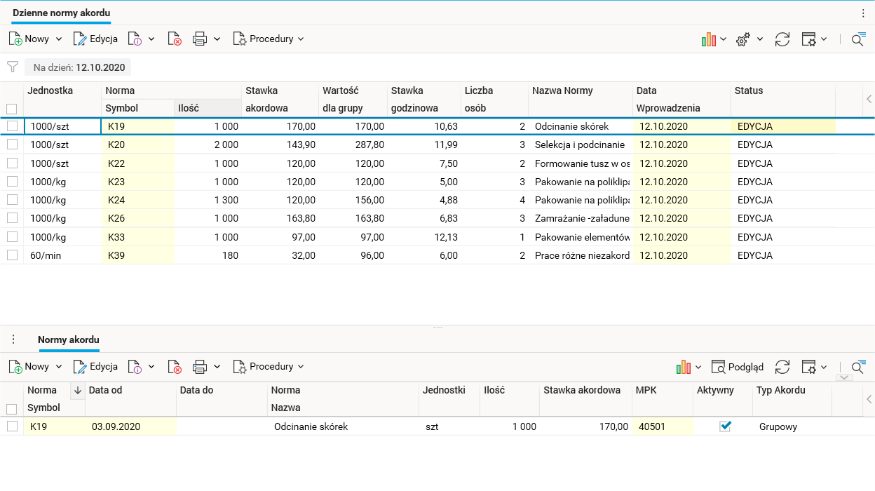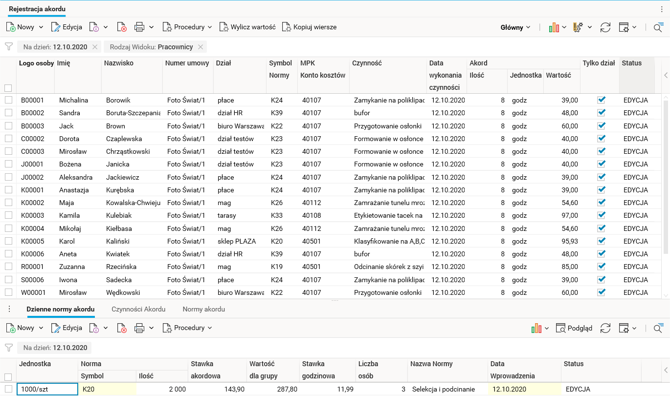 · Zarejestrowania ilości wypracowanego przez pracownika akordu i wyliczenia wartości jego wynagrodzenia w danej normie i danym dniu – w przypadku akordu indywidualnego.