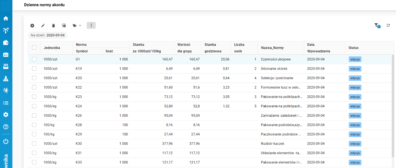 · wprowadzania dziennych ilości pracy wytworzonych w danej normie;