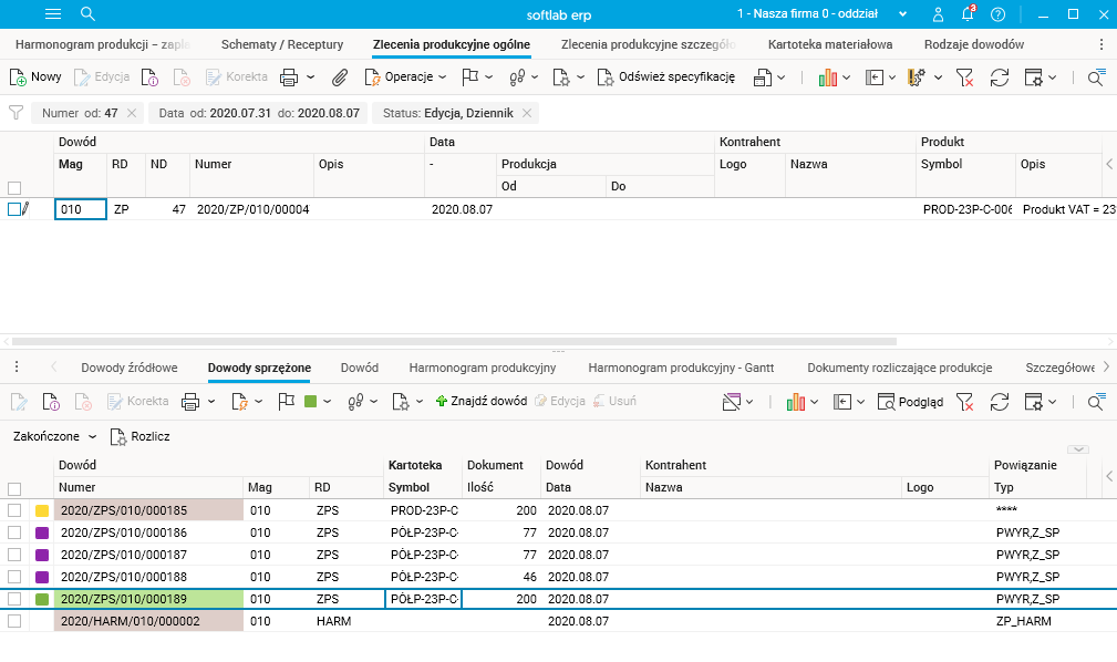 Taka sytuacja została też obsłużona w funkcjach wyliczających zagrożenia realizacji harmonogramu produkcji.