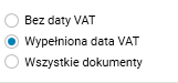 · Wypełniona data VAT – widoczne są wyłącznie dokumenty, które mają wypełnioną datę VAT,