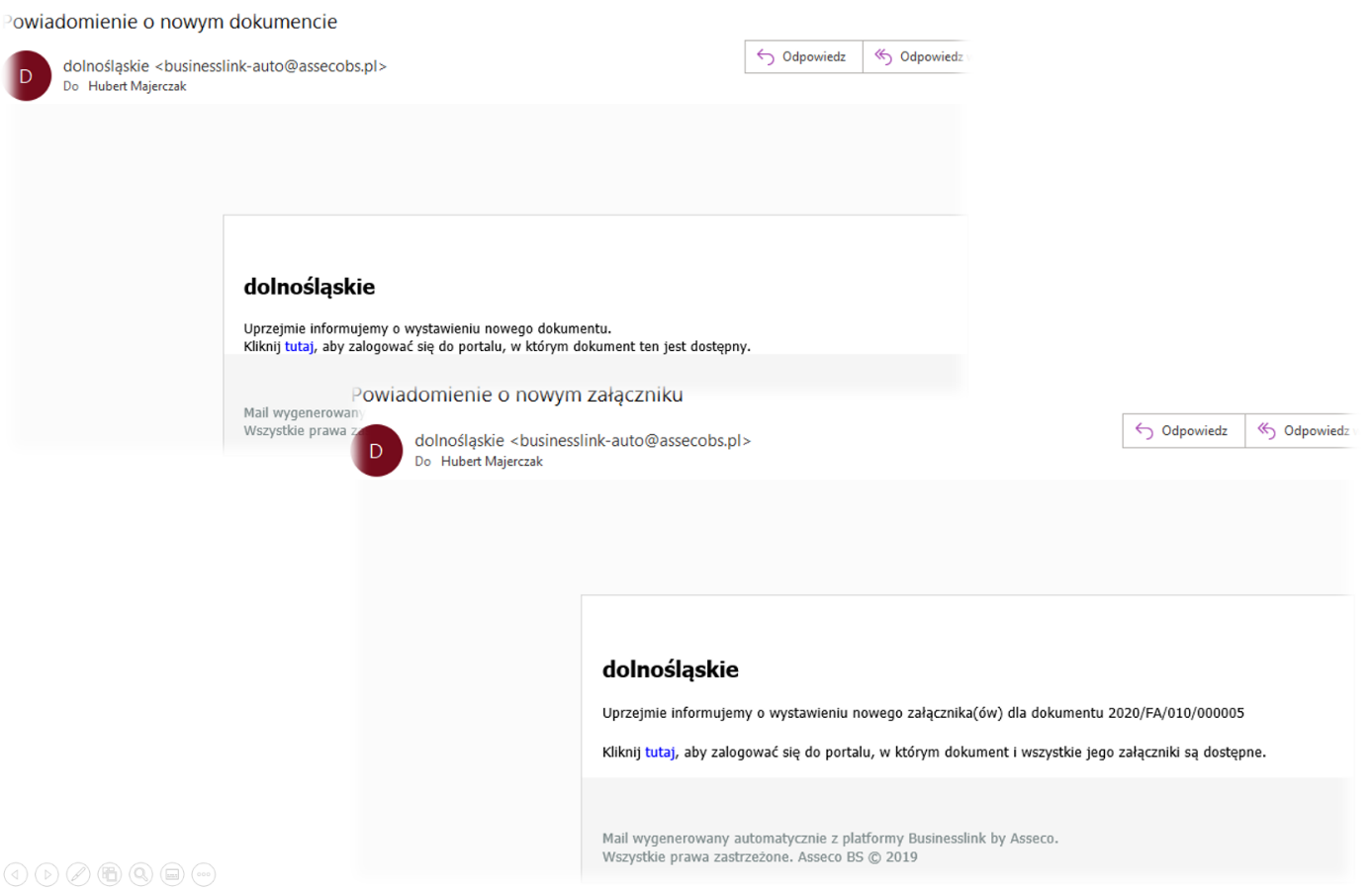 Powyższe opcje określają sposób podłączania załączników zarówno do powiadomień o nowym dokumencie, jak również powiadomień o nowym załączniku.