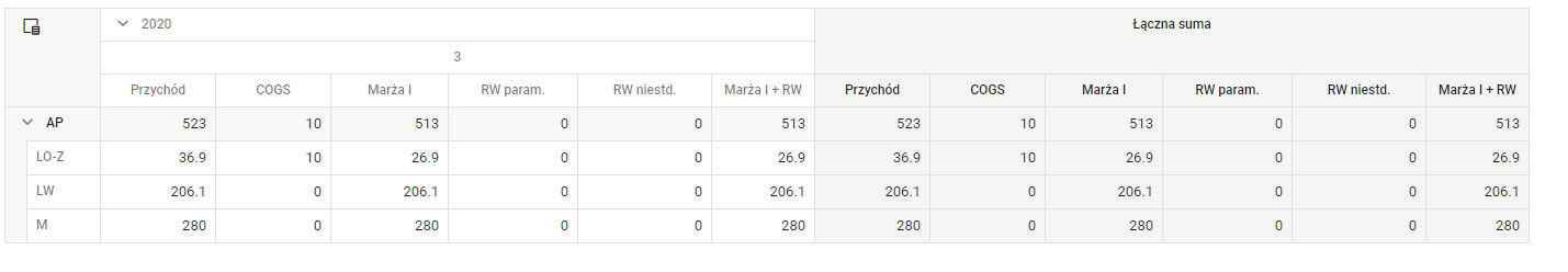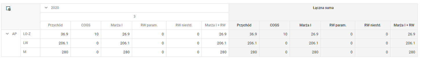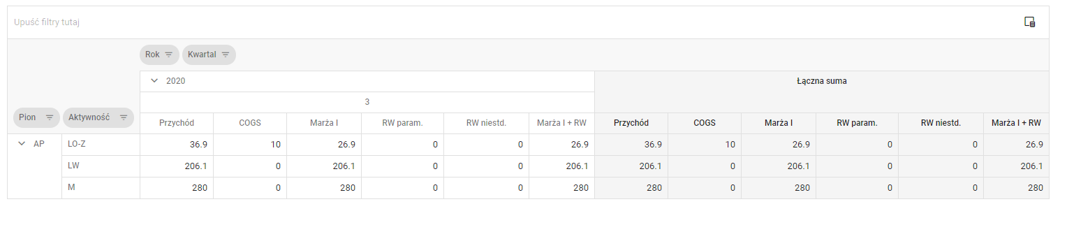 Rys. Układ tabeli przestawnej w najnowszej wersji aplikacji