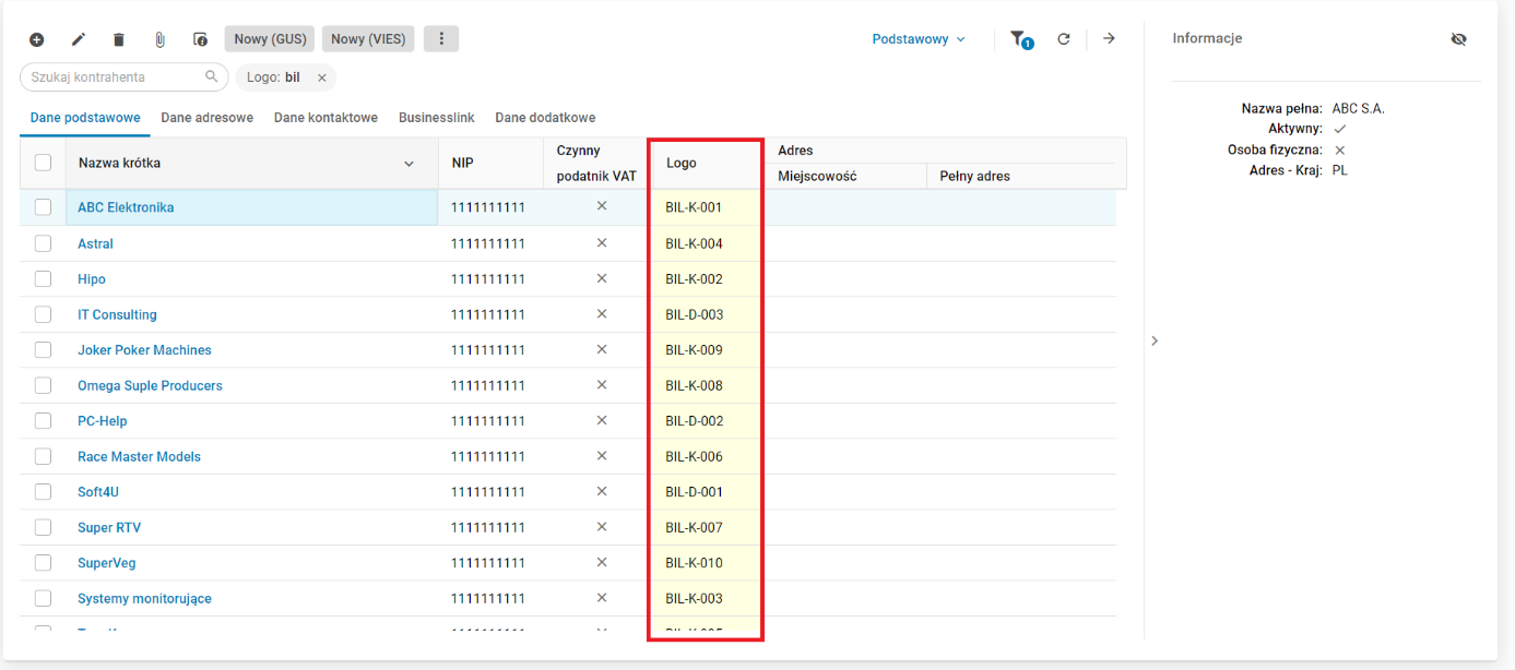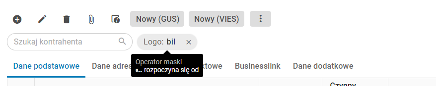 Rys. Przykład szukania w polu „Logo” wartości zaczynających się od frazy „bil”