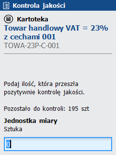 rys. Kontrola jakości – potwierdzenie wprowadzonych ilości