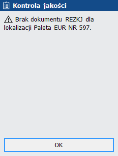 rys. Kontrola jakości – komunikat o braku rezerwacji na lokalizacji, którą chcemy skontrolować