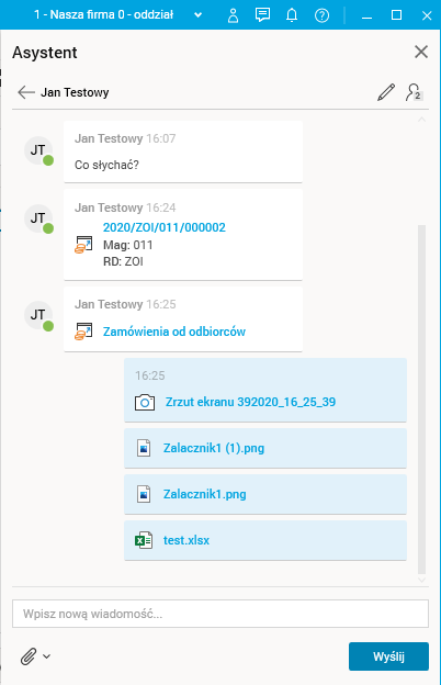 Rys. Konwersacja przedstawiająca wszystkie typy wiadomości