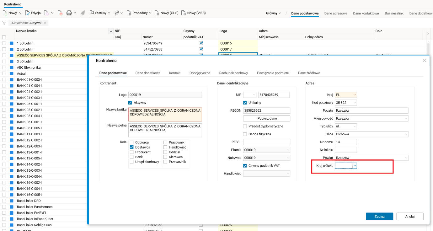 - (Softlab/Klient) Słownik Kraje – zweryfikować przypisanie kodów ED do krajów.