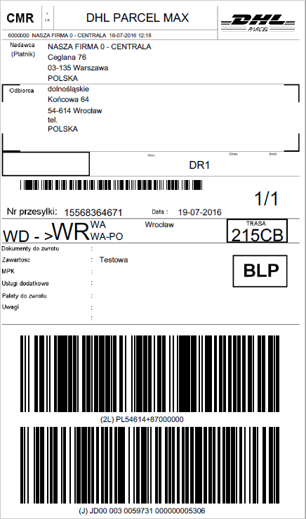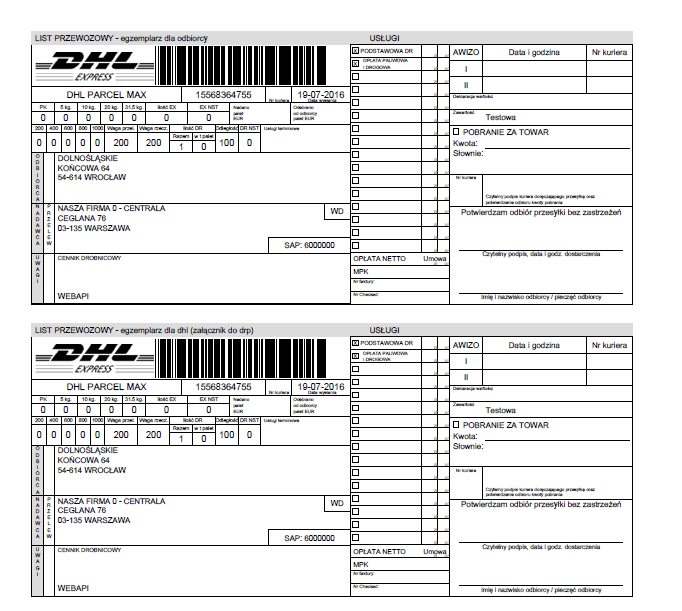 rys. Integracja wysyłki kurierskiej przez Web Serwis z firmą DHL – wydruk listu przewozowego