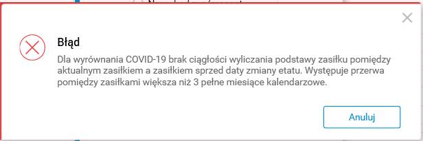 Rys. Komunikat o ręcznie wyliczonej podstawie wyrównywanego świadczenia