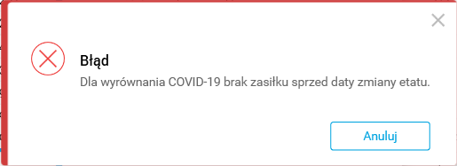Rys. Komunikat o próbie wyrównania zasiłku za okres sprzed zmiany etatu